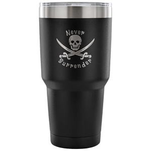 Never Surrender Pirate 30 Ounce Vacuum Tumbler (7 Color Options)